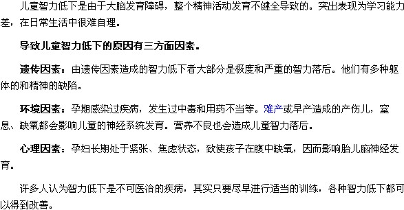 關(guān)于導(dǎo)致兒童智力低下的因素有那幾個(gè)方面的問題,相信很多家長(zhǎng)朋友都比較想了解,為此,醫(yī)學(xué)教育網(wǎng)編輯特撰文如下: