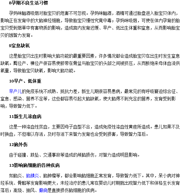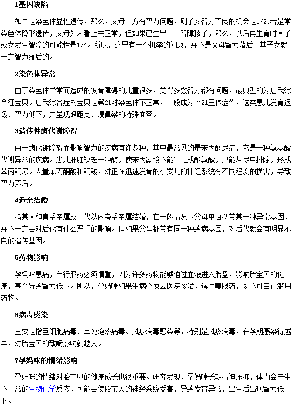 以上“寶寶出現(xiàn)智力低下的原因主要集中在哪幾方面”的內(nèi)容就為大家介紹完了,相信大家在看完上述文章后已經(jīng)有了更深刻的認(rèn)識(shí),希望能夠?qū)Υ蠹矣兴鶐椭?,更多?nèi)容請繼續(xù)關(guān)注醫(yī)學(xué)教育網(wǎng)。 本網(wǎng)站所發(fā)布的文章并不意味著贊同或證實(shí)其觀點(diǎn),僅作為參考信息使用。疾病診療或藥品選用等專業(yè)問題請及時(shí)到醫(yī)院就診或咨詢相關(guān)醫(yī)生。