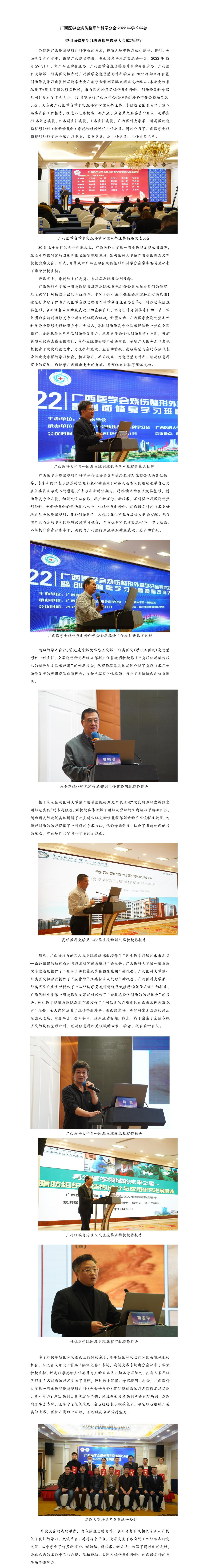 日前,廣西醫(yī)學會發(fā)布了廣西醫(yī)學會燒傷整形外科學分會2022年學術(shù)年會暨創(chuàng)面修復學習班暨換屆選舉大會成功舉行,為方便大家了解,醫(yī)學教育網(wǎng)小編特意收集整理了如下內(nèi)容,歡迎查看!