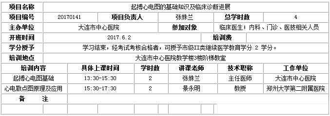 根據(jù)《關于公布2017年大連市繼續(xù)醫(yī)學教育項目的通知》(大繼委發(fā)〔2017〕3 號)精神,《起搏心電圖的基礎知識及臨床診斷進展》學習班擬于 6 月 2 日開班。具體安排如下: