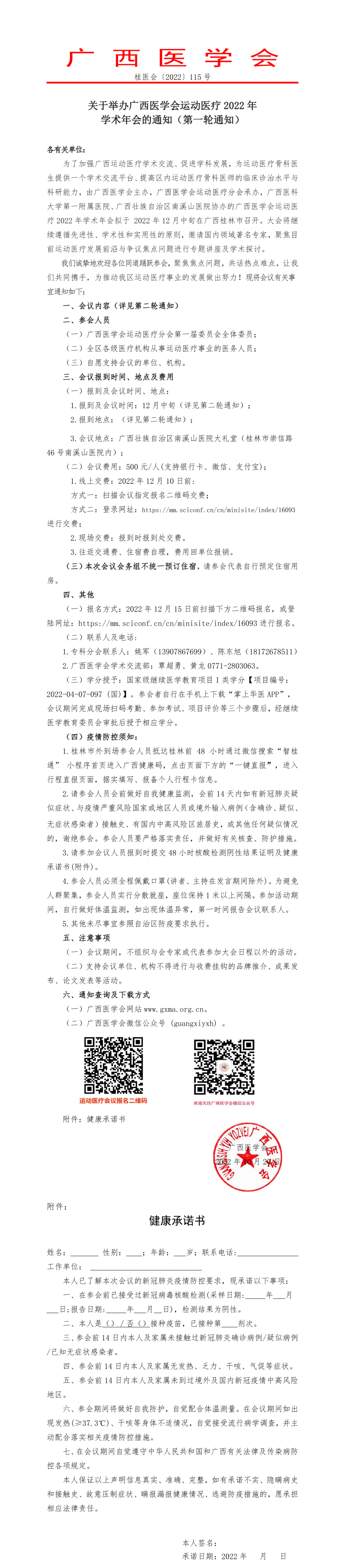 以上就是小編為大家整理的關(guān)于舉辦廣西醫(yī)學(xué)會(huì)運(yùn)動(dòng)醫(yī)療2022年學(xué)術(shù)年會(huì)的通知(第一輪通知),想了解更多有關(guān)繼續(xù)醫(yī)學(xué)教育、考試培訓(xùn)等相關(guān)優(yōu)質(zhì)資訊還請(qǐng)多多關(guān)注醫(yī)學(xué)教育網(wǎng)!
