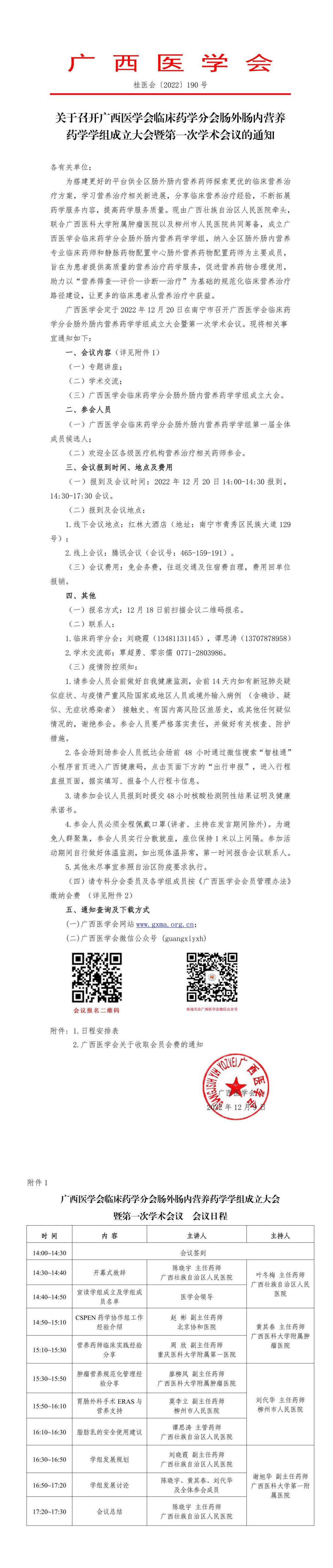 以上就是小編為大家整理的關(guān)于召開廣西醫(yī)學會臨床藥學分會腸外腸內(nèi)營養(yǎng)藥學學組成立大會暨第一次學術(shù)會議的通知,想了解更多有關(guān)繼續(xù)醫(yī)學教育、考試培訓等相關(guān)優(yōu)質(zhì)資訊還請多多關(guān)注醫(yī)學教育網(wǎng)!