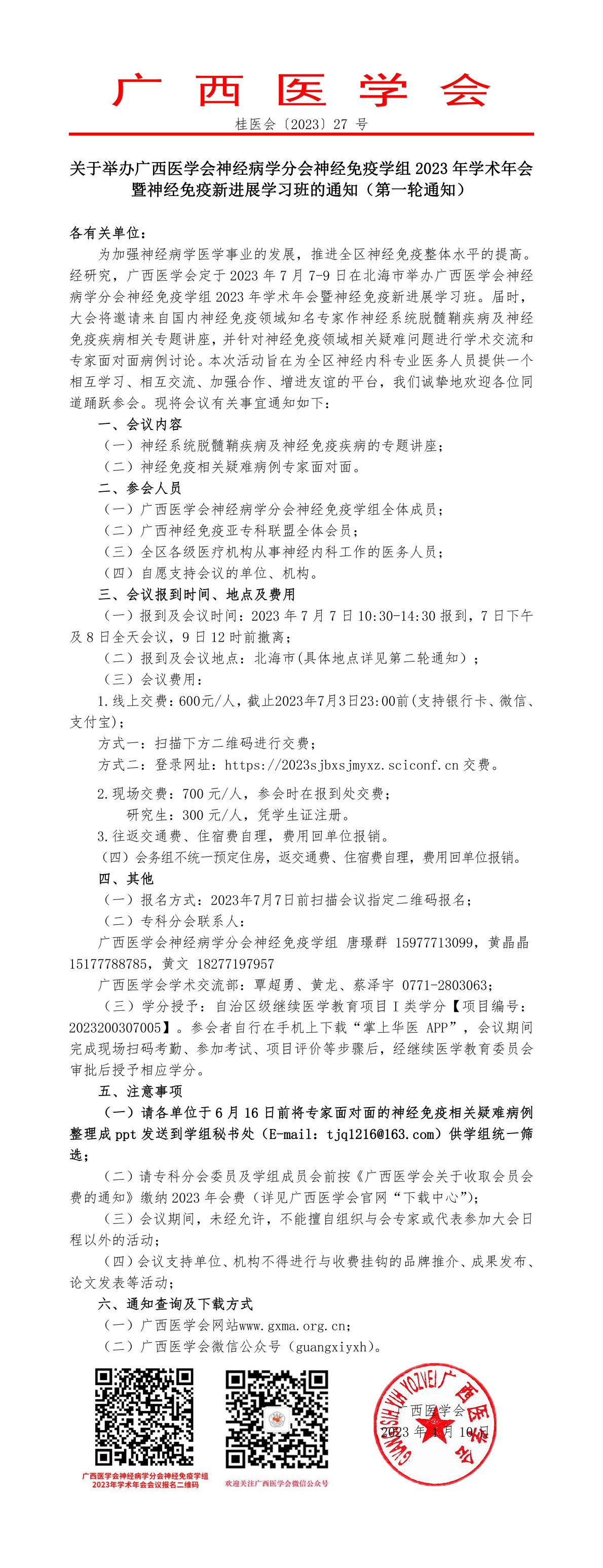 以上就是小編為大家整理的關(guān)于舉辦廣西醫(yī)學(xué)會神經(jīng)病學(xué)分會神經(jīng)免疫學(xué)組2023年學(xué)術(shù)年會暨神經(jīng)免疫新進(jìn)展學(xué)習(xí)班的通知(第一輪通知),想了解更多有關(guān)繼續(xù)醫(yī)學(xué)教育、考試培訓(xùn)等相關(guān)優(yōu)質(zhì)資訊還請多多關(guān)注醫(yī)學(xué)教育網(wǎng)!