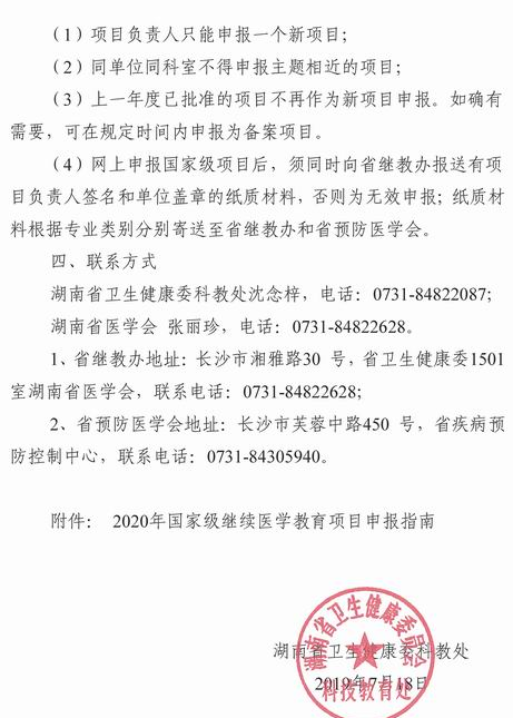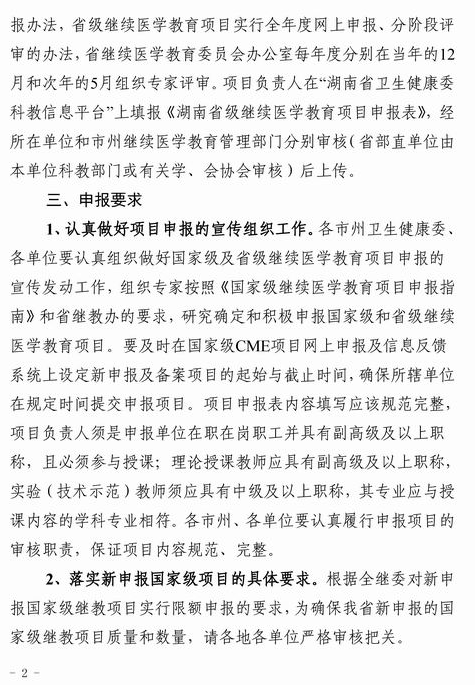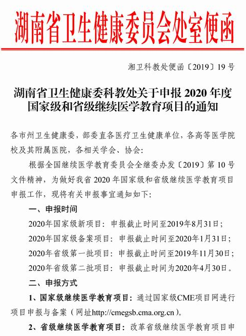 湖南省衛(wèi)生健康委科教處關(guān)于申報(bào)2020年度國家級和省級繼續(xù)醫(yī)學(xué)教育項(xiàng)目的通知如下,請查看!