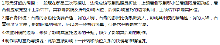 15.打磨與拋光:影響著義齒邊緣的長短及外形、基托的外形、固位形、基托的耐用性以及患者的舒適程度。