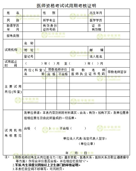 以上是“2019年口腔執(zhí)業(yè)醫(yī)師資格考試試用期考核證明表下載”的內(nèi)容,由醫(yī)學(xué)教育網(wǎng)小編整理搜集,希望對(duì)大家有幫助!