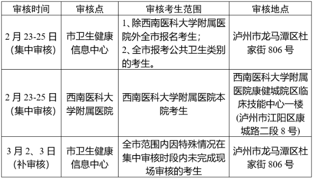 2024年瀘州考點(diǎn)設(shè)市衛(wèi)生健康信息中心和西南醫(yī)科大學(xué)附屬醫(yī)院兩個(gè)現(xiàn)場(chǎng)審核點(diǎn)。具體安排如下: