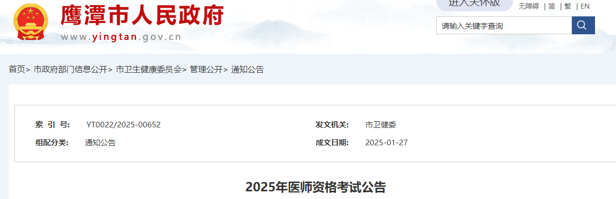 2025年醫(yī)師資格考試(江西鷹潭考點)報名審核安排&要求已公布!請相關考生及時查看官方通知要求,按時參與報名審核。