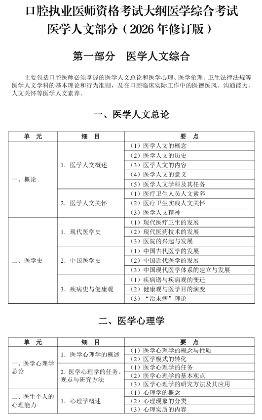 2026年口腔執(zhí)業(yè)醫(yī)師《醫(yī)學(xué)人文》大綱修訂版下載