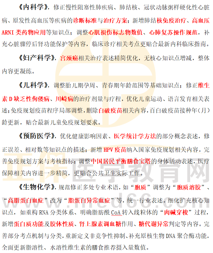 二、臨床、預(yù)防等綜合科目變動(dòng)要點(diǎn)