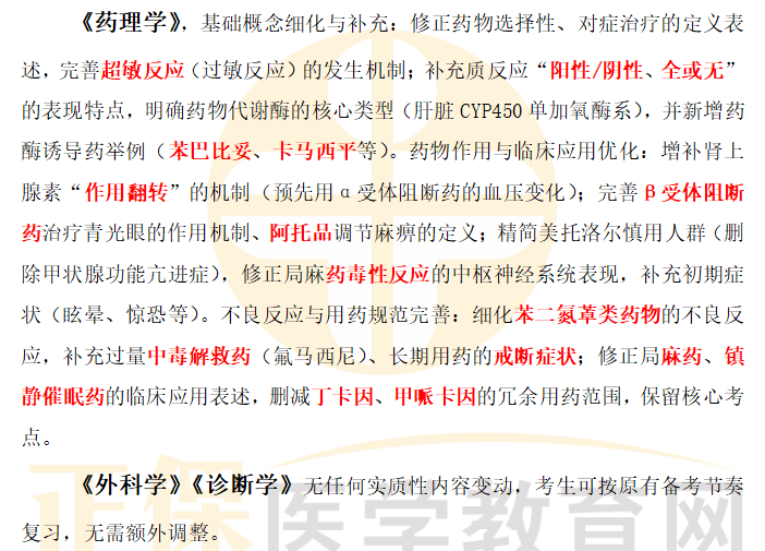備考過(guò)程中,建議以新版教材為核心,對(duì)照變動(dòng)要點(diǎn)逐一標(biāo)注強(qiáng)化,結(jié)合臨床案例深化理解,同時(shí)通過(guò)真題練習(xí)檢驗(yàn)掌握程度。后續(xù)我們將持續(xù)更新各科目重難點(diǎn)解析與備考技巧,助力考生精準(zhǔn)發(fā)力,順利通過(guò)考試!