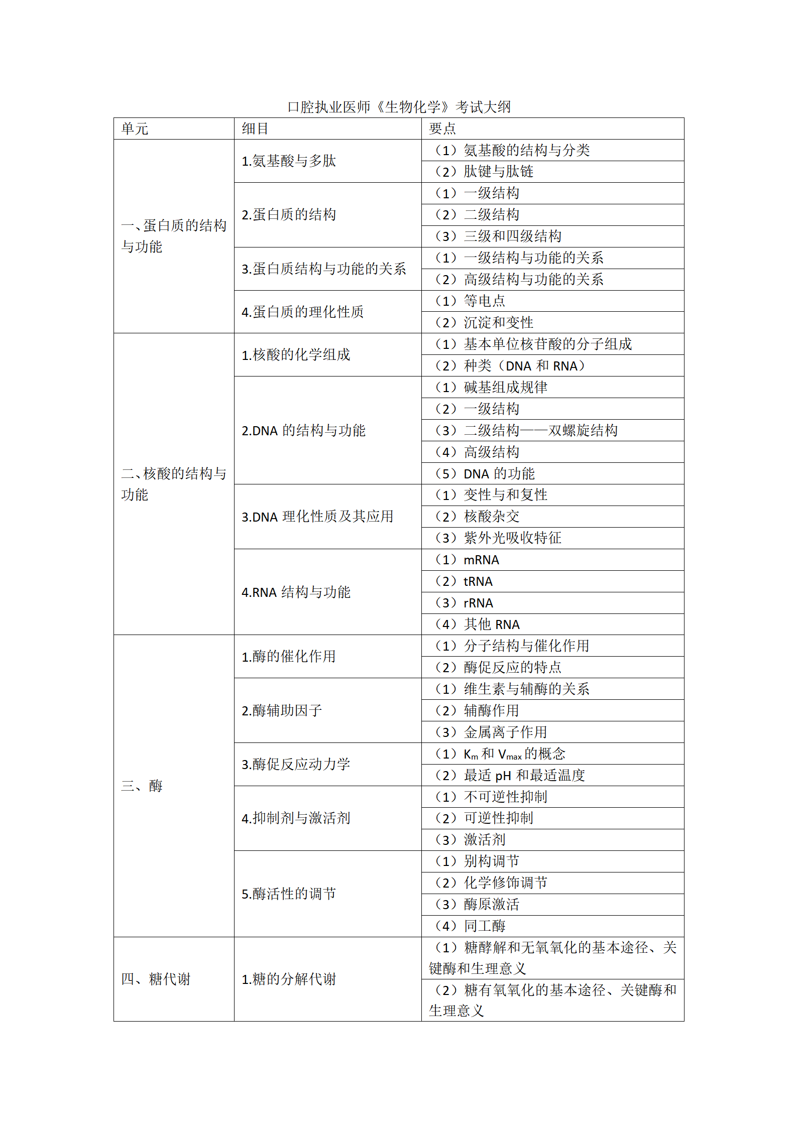 2023年口腔執(zhí)業(yè)醫(yī)師綜合考試《生物化學(xué)》考試大綱