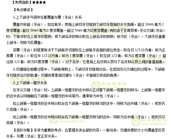 2.【答案及解析】C。覆(牙合):指上頜牙蓋過下頜牙唇、頰面的垂直距離。