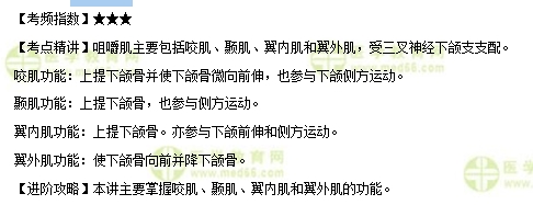 本講主要掌握咬肌、顳肌、翼內(nèi)肌和翼外肌的功能。下面將相關(guān)知識點(diǎn)及試題測試解析整理成文章“口腔執(zhí)業(yè)醫(yī)師考試知識點(diǎn)精講:咀嚼肌”分享如下: