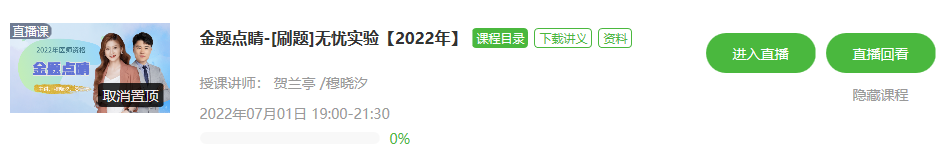 【醫(yī)學(xué)教育網(wǎng)原創(chuàng),轉(zhuǎn)載請注明出處】溫馨提示:未購課用戶,可抓緊時間購課哦,購買無憂實驗班/高效定制班均包含金題點睛直播課。點擊查看金題點睛直播課表>>。已購買超值精品班的學(xué)員,可以通過補交差價升級班次哦,立即咨詢>>