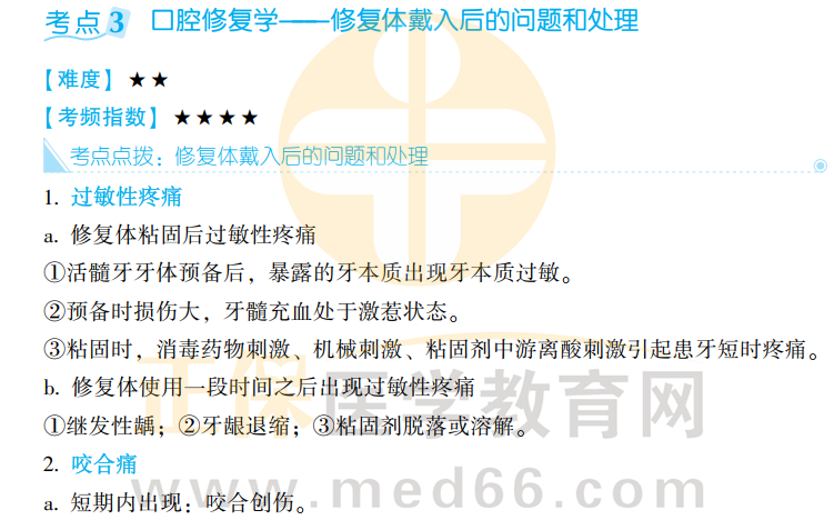 口腔修復(fù)學(xué)———修復(fù)體戴入后的問題和處理沖刺必會(huì)