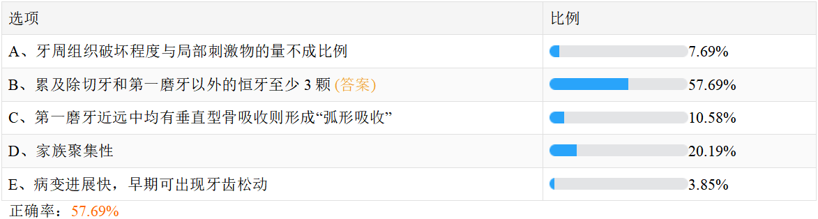 關(guān)于“局限型侵襲性牙周炎的臨床特點(diǎn)不包括?”,相信很多正在備戰(zhàn)2023年口腔執(zhí)業(yè)醫(yī)師考試的考生十分關(guān)注,此題在摸底測(cè)試50題(點(diǎn)擊參加測(cè)試>>)中正確率僅為57.69%,建議大家及時(shí)復(fù)習(xí),牢固掌握相關(guān)知識(shí)點(diǎn)!