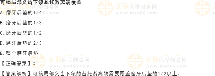 2023口腔執(zhí)業(yè)醫(yī)師口腔修復(fù)專題“可摘局部義齒下頜基托游離端覆蓋”測試題