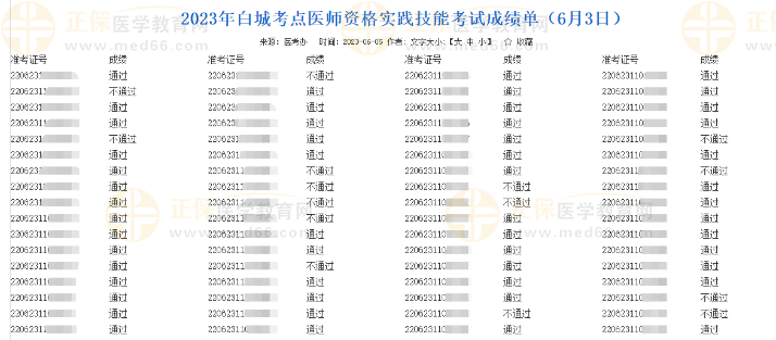 吉林白城官方發(fā)布了(6月3日) 醫(yī)師資格實踐技能考試成績,正保醫(yī)學(xué)教育網(wǎng)小編整理如下,請相關(guān)考生及時查看,同時關(guān)注后續(xù)筆試?yán)U費通知!