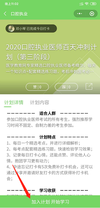 打卡第三步:加入計劃-開始做題:
