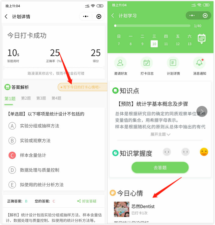 打卡第四步:每天完成做題,還可以發(fā)表心情哦,跟一起備戰(zhàn)的考友切磋!