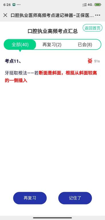 三、沒有記住的考點可以點擊“再復(fù)習(xí)”;