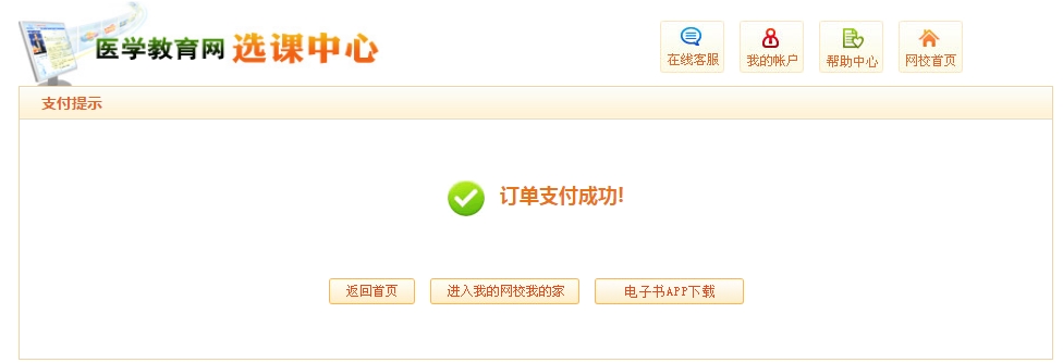 第四步,點擊“完成支付”,會顯示訂單支付成功,點擊“進入我的網校我的家”,即可體技能精選課程。