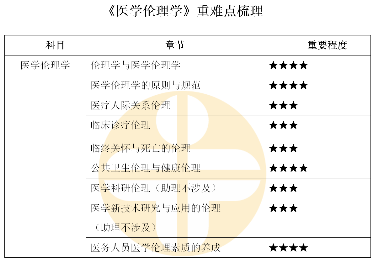 醫(yī)學(xué)倫理學(xué)在醫(yī)師資格考試當(dāng)中約占總題量1%左右,多描述性知識(shí),強(qiáng)化記憶效果好。較易得分。是考前提分首選科目之一。