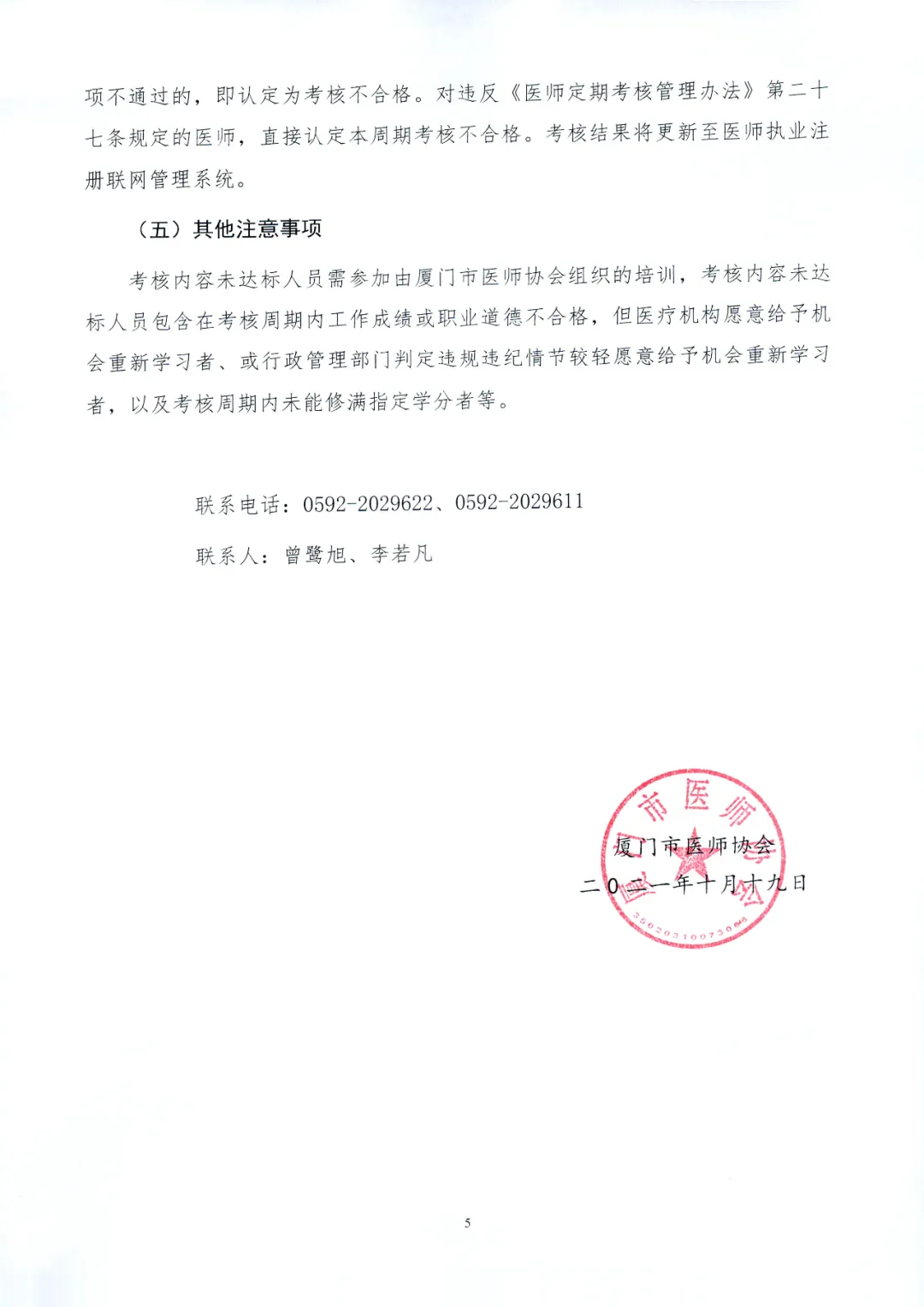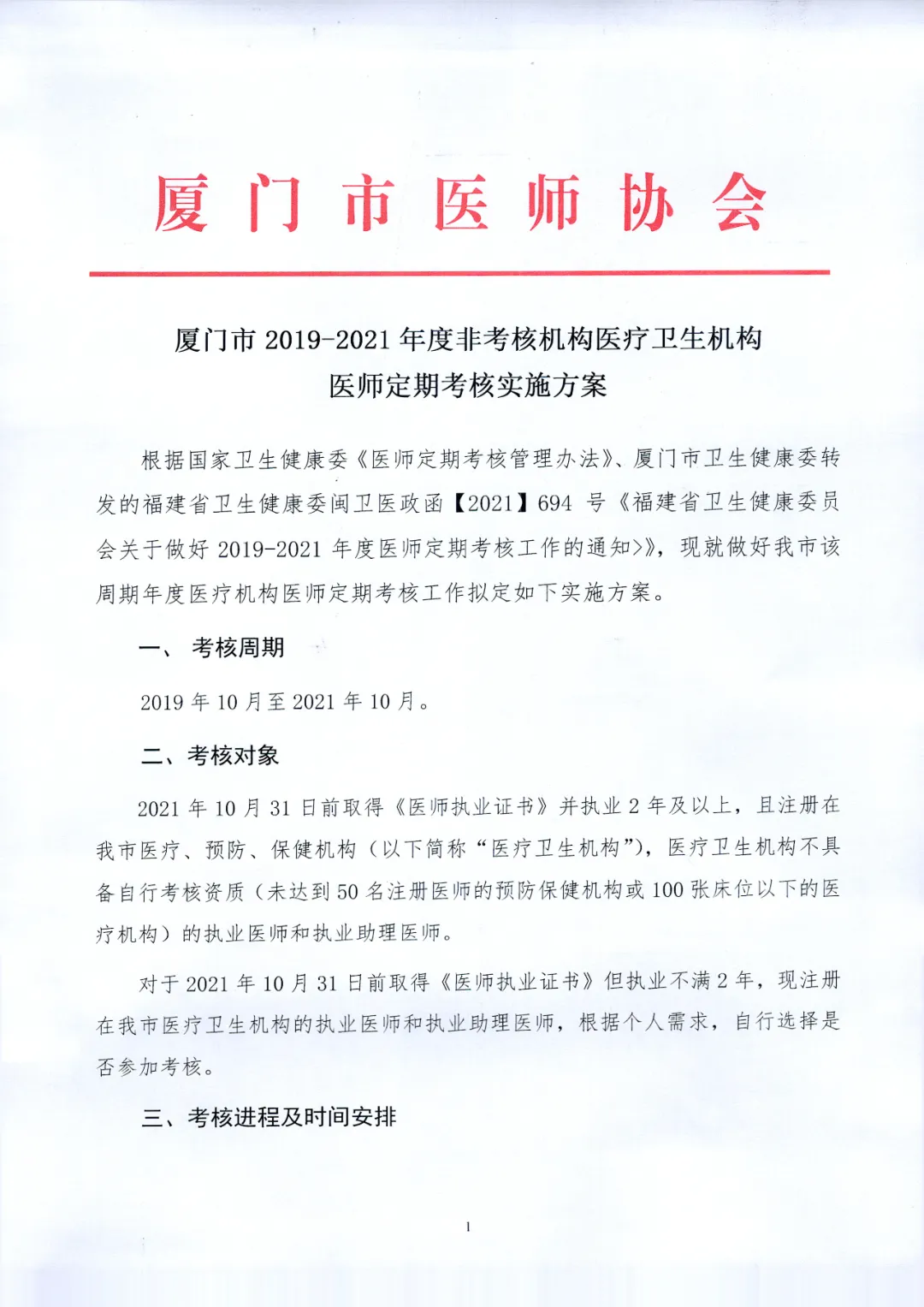 廈門市2019-2021年度非考核機(jī)構(gòu)醫(yī)療衛(wèi)生機(jī)構(gòu)醫(yī)師定期考核