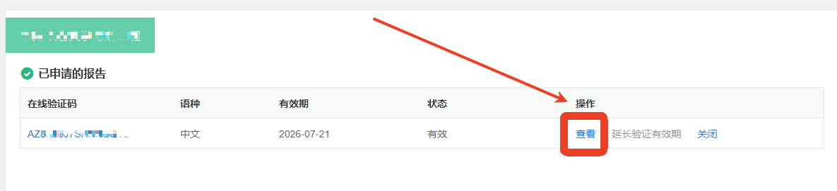 8、完成申請(qǐng)后,點(diǎn)擊“查看”。