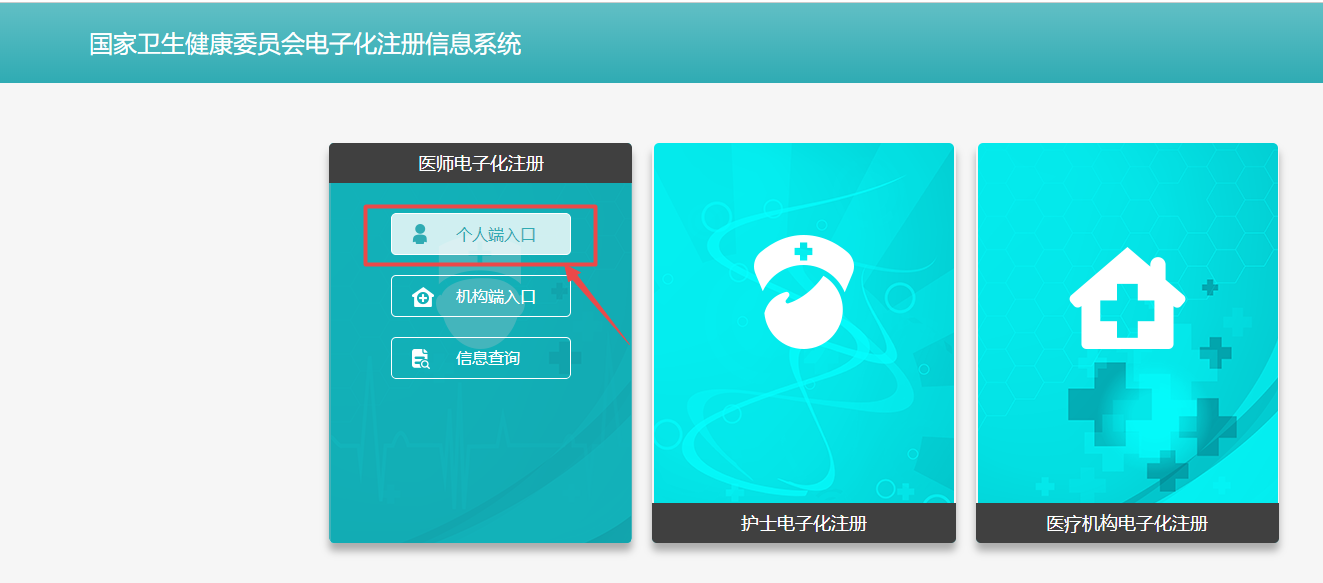 1.在“國家衛(wèi)生健康委員會-電子化注冊信息系統(tǒng)”頁面,點擊“醫(yī)師電子化注冊-個人端入口”。