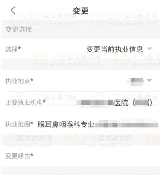2、選擇要變更的執(zhí)業(yè)信息,點擊[開始變更]按鈕。