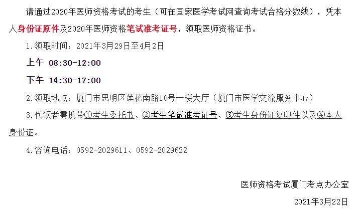 廈門市2020年口腔執(zhí)業(yè)醫(yī)師資格證書3月29日開始領(lǐng)取