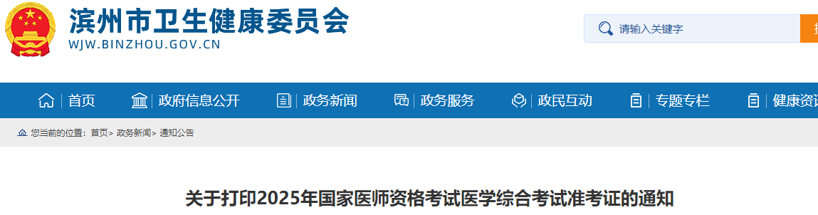 山東濱州2025年醫(yī)師資格綜合筆試準(zhǔn)考證8月15日起可打?。≌埾嚓P(guān)考生及時查看,做好應(yīng)試準(zhǔn)備!