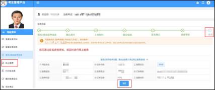 點(diǎn)擊報(bào)考流程中的【繳費(fèi)】節(jié)點(diǎn)或左側(cè)【網(wǎng)上繳費(fèi)】,核對(duì)報(bào)考專業(yè)科目和金額,確認(rèn)無誤后,點(diǎn)擊“支付”按鈕跳轉(zhuǎn)至考區(qū)指定的繳費(fèi)平臺(tái)進(jìn)行支付。完成繳費(fèi)后【繳費(fèi)】節(jié)點(diǎn)變?yōu)榫G色,表示報(bào)名成功。