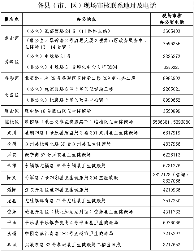各縣(市、區(qū))現(xiàn)場審核聯(lián)系地址及電話