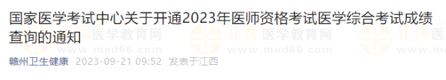 山東棗莊考點2023年口腔助理醫(yī)師資格考試醫(yī)學綜合考試成績查詢開始
