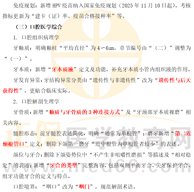 二、2026年口腔執(zhí)業(yè)助理醫(yī)師教材內(nèi)容核心變動(dòng)