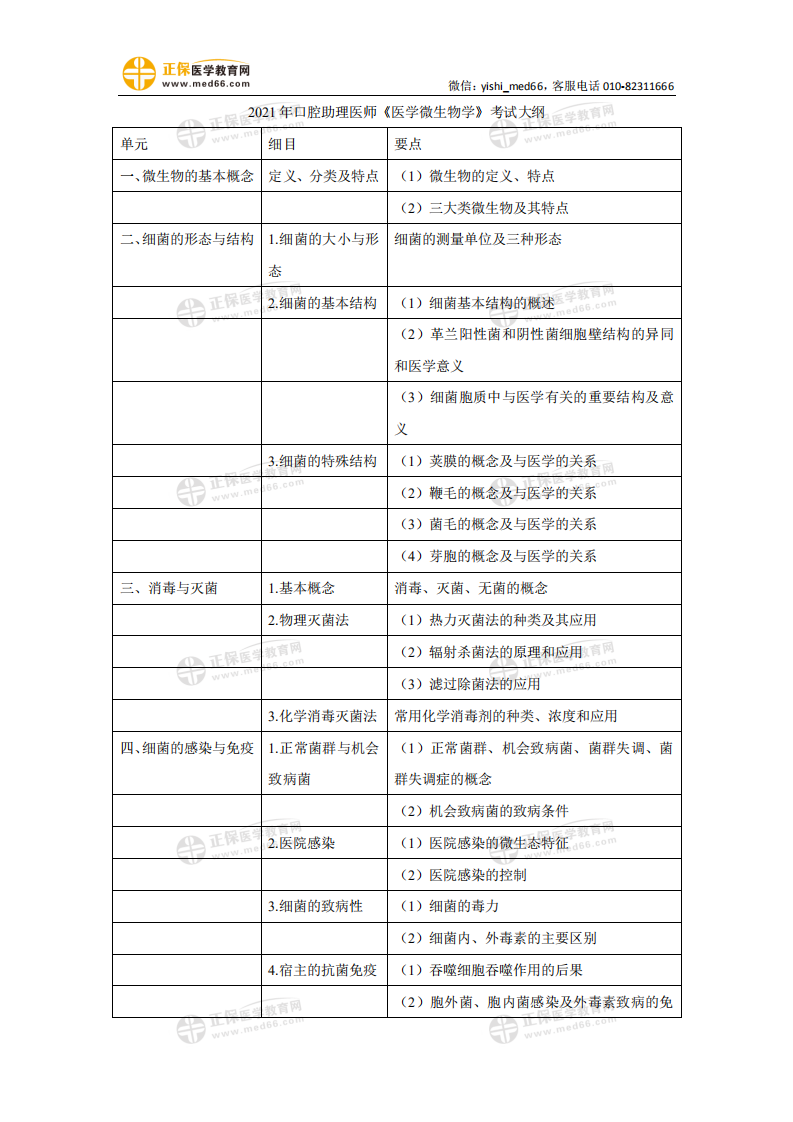 “2021年口腔執(zhí)業(yè)助理醫(yī)師《醫(yī)學(xué)微生物學(xué)》考試大綱下載”的內(nèi)容,由醫(yī)學(xué)教育網(wǎng)編輯整理,更多口腔助理醫(yī)師考試復(fù)習(xí)資料、考試動(dòng)態(tài)、學(xué)習(xí)經(jīng)驗(yàn)技巧,敬請(qǐng)關(guān)注醫(yī)學(xué)教育網(wǎng)口腔助理醫(yī)師欄目。