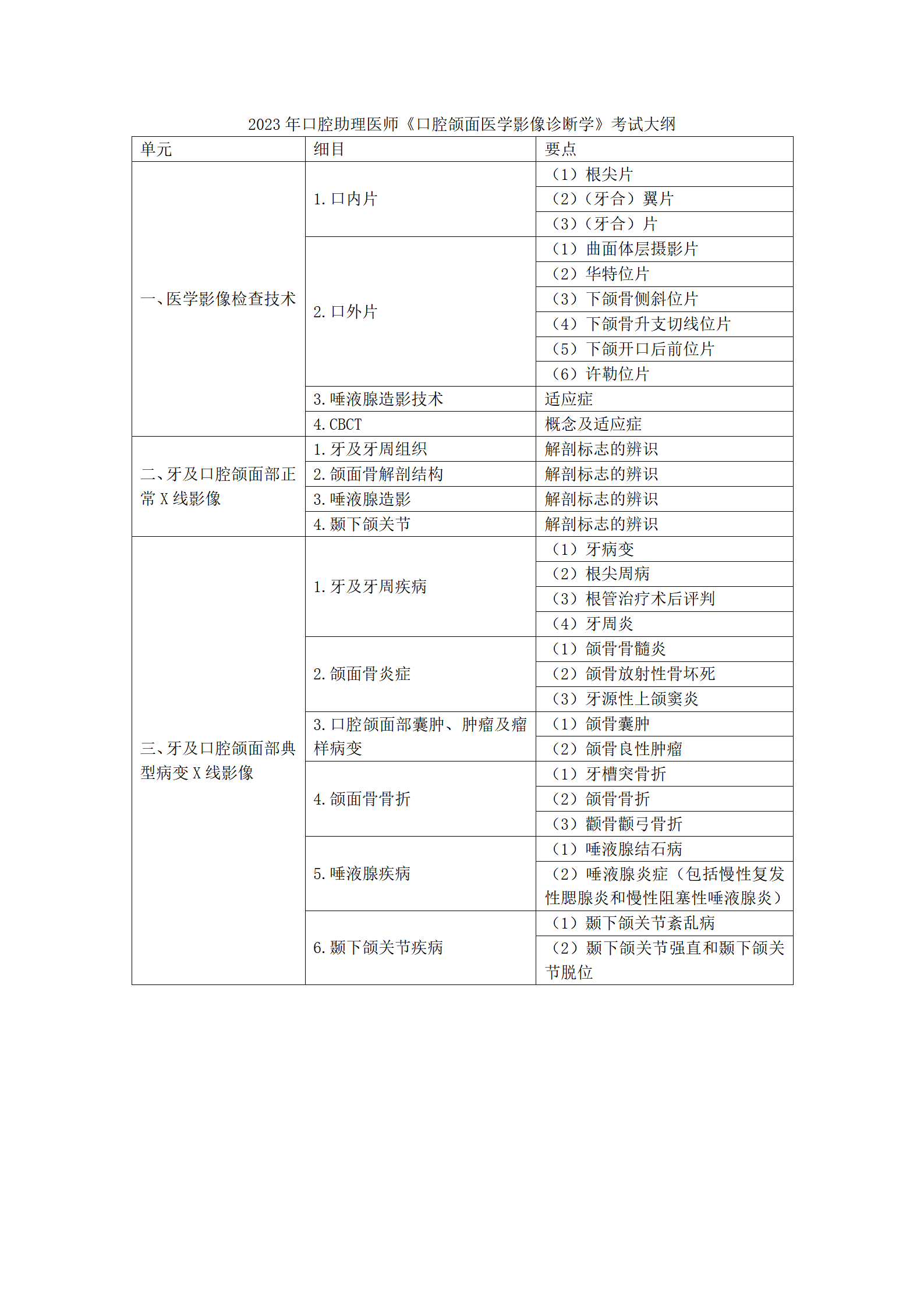 2023年口腔助理醫(yī)師《口腔頜面醫(yī)學(xué)影像診斷學(xué)》考試大綱(文檔下載)