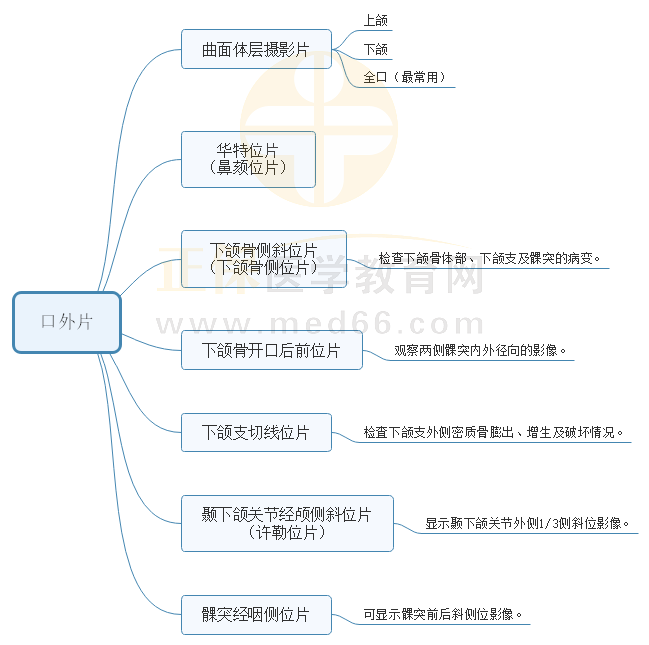 口腔頜面醫(yī)學影像診斷學多與其他科目特別是口腔頜面外科學結合進行考察,且以圖片題形式居多,這就要求對于此科目知識點的掌握不能局限于文字的記憶。口腔頜面醫(yī)學影像診斷學考點圖譜如下: