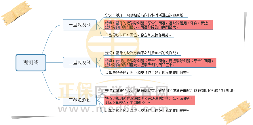 口腔助理醫(yī)師歷年考點一型、二型、三型觀測線思維導圖
