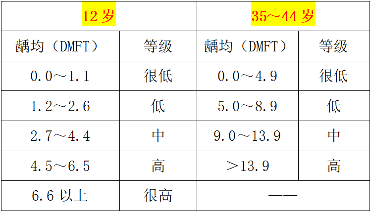 4.齲病流行程度評價(jià)標(biāo)準(zhǔn)