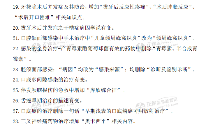 2021口腔助理醫(yī)師《口腔頜面外科學(xué)》考試用書(shū)28個(gè)變動(dòng)要點(diǎn)歸納