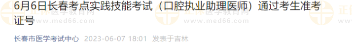 吉林長(zhǎng)春6月6日口腔助理醫(yī)師實(shí)踐技能考試通過(guò)考生名單