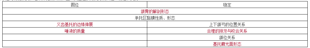 3.為了達(dá)到功能恢復(fù)和組織保健的目的,全口義齒應(yīng)獲得良好的固位、穩(wěn)定和支持。