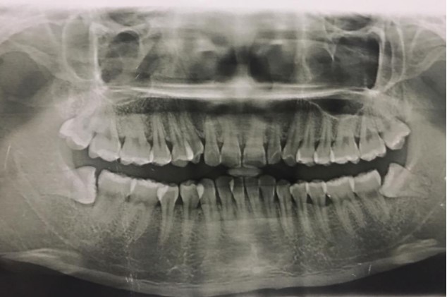 非主訴疾病的診斷依據(jù):X線全景片顯示雙側(cè)下頜智齒近中阻生。