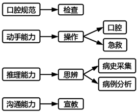 考站名稱(chēng) 題量 分值(分) 時(shí)間(分鐘) 考試形式考試要求 第一站 口腔檢查 2 24 20 操作洗手和戴手套,黏膜消毒、一般檢查、特殊檢查,并記錄檢查結(jié)果 第二站 口腔操作 2~3 40 36 操作仿頭模、模具或離體牙上進(jìn)行操作,或?qū)σ芽伎忌M(jìn)行操作。 第三站 急救技術(shù) 2 10 6 操作模擬人上操作或?qū)σ芽伎忌M(jìn)行檢查。 第四站 病史采集 1 5 5 口述同一房間、同一臺(tái)考生機(jī)進(jìn)行。計(jì)算機(jī)呈現(xiàn)試題,考生口述作答 第五站 病例分析 1 18 10 口述 第六站 健康教育 1 3 3 操作口述考生在模具上操作,邊操作邊口述。 合計(jì) 9~10 100 80 一規(guī)范 三能力