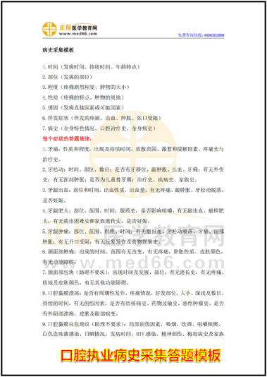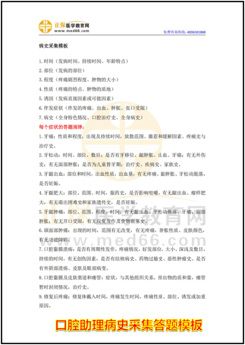 (口腔助理病史采集答題模板部分內容)