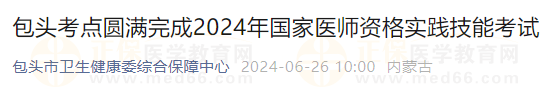 根據(jù)官方報(bào)道,內(nèi)蒙古鄂爾多斯市2024年國家醫(yī)師資格實(shí)踐技能考試任務(wù)圓滿完成。以下為官方通知內(nèi)容: